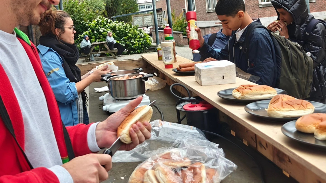 Dag van de Jeugdbeweging vandaag! We maakten hotdogs voor de leerlingen die fier in uniform naar school kwamen.